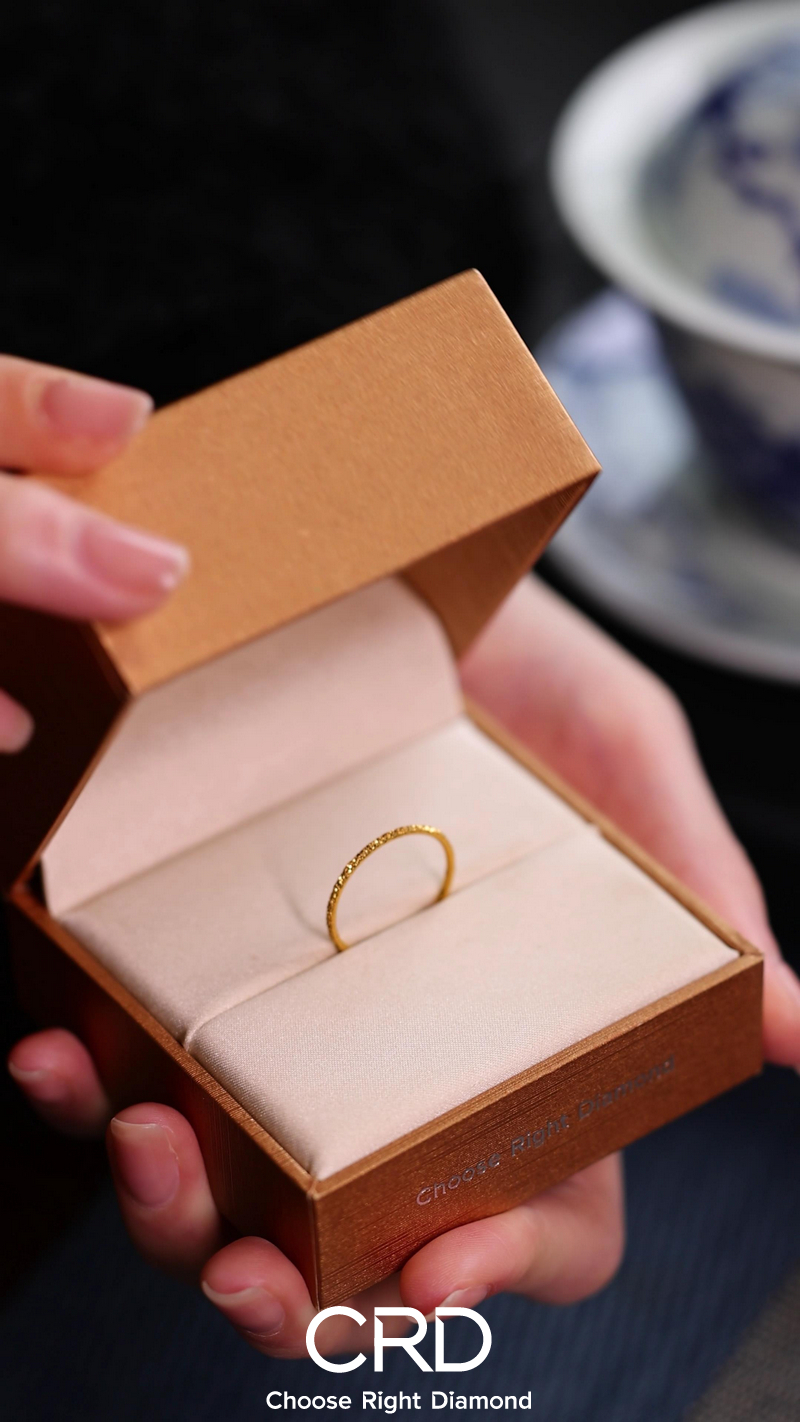 无需镶嵌宝石或雕刻花纹,足金本身的光泽便是最好的装饰——阳光下是流动的金色诗行,暗处则沉淀为低调的奢华。这款戒指适配任何场合:叠戴于指尖,是职场女性的干练点缀;单独佩戴,又能成为婚礼上“我愿意”的永恒信物。CRD克徕帝始终坚信,真正的奢华从不喧嚣。素圈足金戒指的诞生,历经熔金、锻打、抛光等十二道古法工艺,由三十年以上经验的匠人手工淬炼而成。
