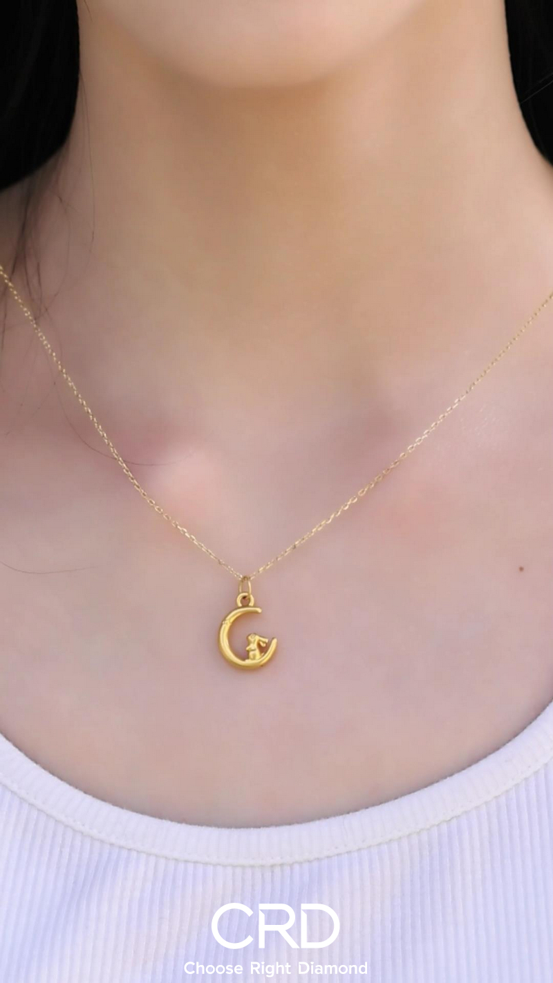 月亮,既是团圆的象征,也是祝福的使者。佩戴它,不仅是对美的追求,更是对亲情的珍视与传承。无论是送给家人还是朋友,月亮足金项链都能成为你表达心意的最佳选择。在每一个重要的时刻,让这份月满人间的温情,传递着你的爱与祝福。同时,月亮足金项链还注重佩戴的实用性与美观性。轻盈的链条设计,不会给颈部带来负担;而独特的造型与足金的质感,则让你在人群中脱颖而出,成为众人瞩目的焦点。它不仅仅是一件珠宝,更是一种情感的纽带,连接着你与亲朋好友之间的深厚情谊。